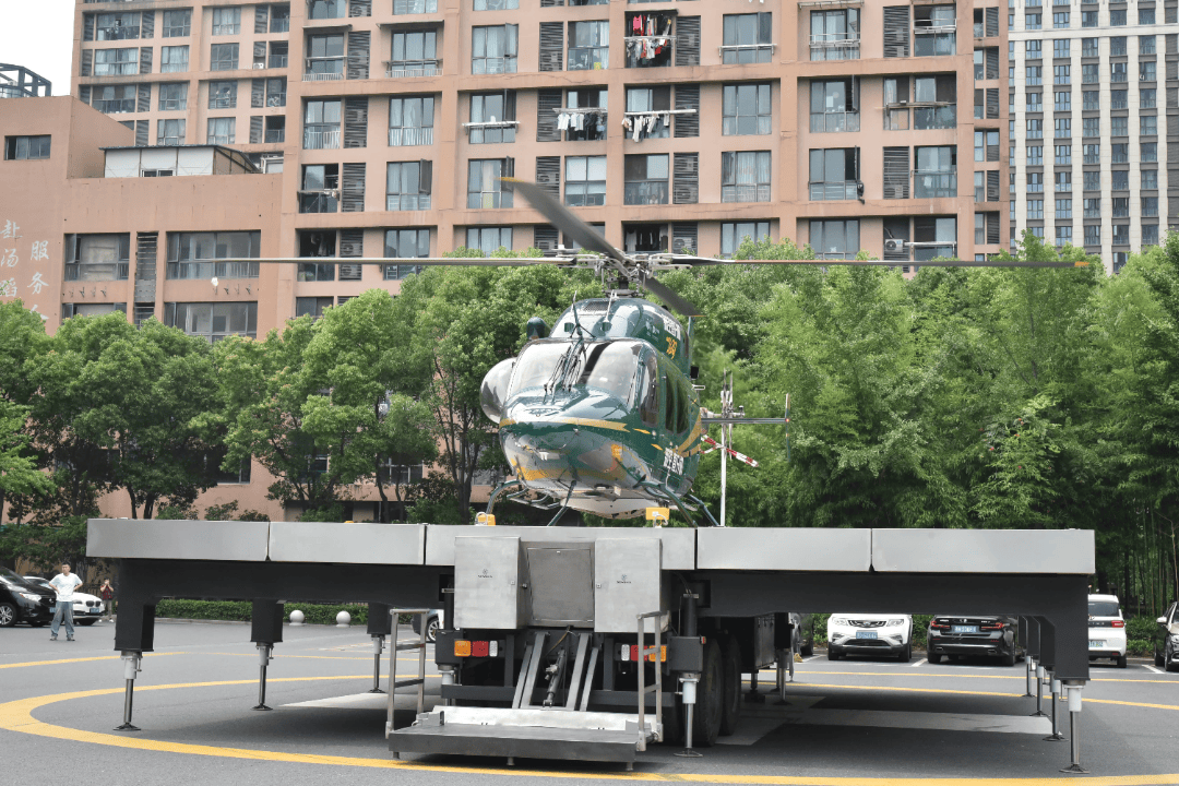浙江圣翔航空科技有限公司“一种车载移动式垂直飞行器起降场”通过创新车载可移动设计,实现起降场跟随需求灵活转移的功能,有效解决了传统固定式起降场受场地制约的问题,拓展快速机动部署起降场的应用场景,适用于13.5吨以下垂直飞行器起降,是全国首部车载可移动的智能起降场。产品相关技术已获发明专利3件、申请7件,获实用新型专利10件、制定团体标准1项,技术处国际先进水平。