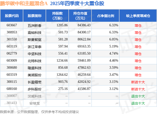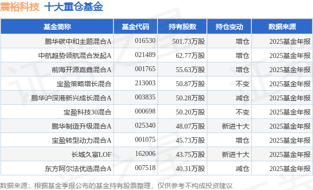根据2025基金年报公募基金重仓股数据,重仓该股的公募基金共56家,其中持有数量最多的公募基金为鹏华基金的鹏华碳中和主题混合A。鹏华碳中和主题混合A目前规模为41.05亿元,最新净值2.0015(2月5日),较上一交易日下跌2.14%,近一年上涨46.63%。该公募基金现任基金经理为闫思倩。闫思倩在任的基金产品包括:鹏华沪深港新兴成长混合A,管理时间为2022年5月7日至今,期间收益率为54.69%;鹏华新能源汽车混合A,管理时间为2022年7月26日至今,期间收益率为27.85%;鹏华科技驱动混合发起式A,管理时间为2024年8月29日至今,期间收益率为46.43%。
